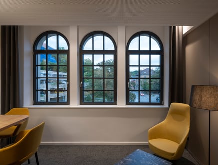 Il restyling del 2021 della filiale principale della “Volksbank in der Region” di Tubinga è riuscito a conservare l’aspetto autentico dell’edificio: la varietà di soluzioni Finstral permette infatti di adattare i serramenti a qualsiasi contesto architettonico. La sfida di intervenire su un edificio posto sotto tutela è stata quella di preservare la sua identità storica, senza rinunciare ad elevati standard funzionali. I serramenti dalle forme classiche, le finestre ad arco e quelle rotonde, abbinate alle pareti vetrate FIN-Vista e ai listelli finemente elaborati, rievocano lo stile del XIX secolo, creando un bellissimo contrasto con la modernità della facciata.